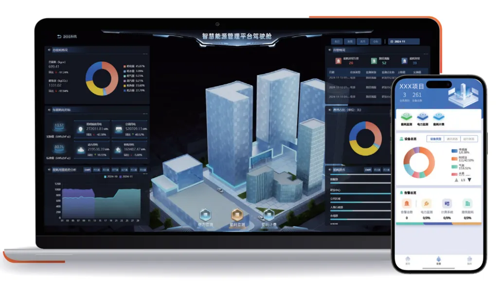 利用各种传感器和智能设备,实现对建筑物或建筑群体的冷热源、空调系统、送排风、给排水等各种机电设备的运行、安全状况、能源使用状况实行集中监管,让能源管理更加集成化、智能化、数字化、可视化。