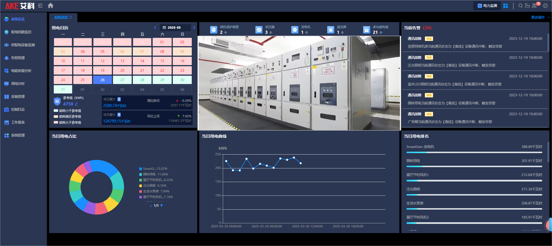 基于智能设备实时监测变配电系统运维状态,实现全方位的智能监测、智能化故障预警、便捷化运行管理、全面的电能质量监测与分析,保障园区供电安全稳定。