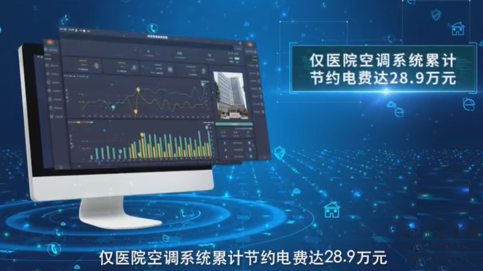 在监控中心,人员可以通过直观了解医院内各区域用能情况、设备运行情况等实时信息,据平台数据汇总,改造后三个月仅医院空调系统累计节约电费达28.9万元,显著的节能降耗效果得到了参观领导嘉宾的认可。