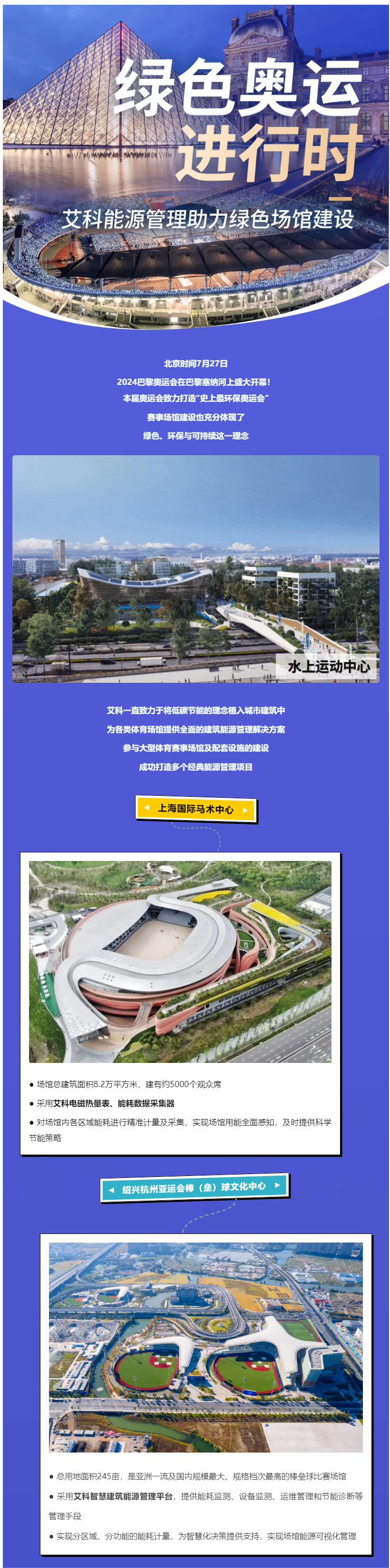 为巴黎绿色奥运喝彩,英国威廉集团官网能源管理助力绿色场馆建设!